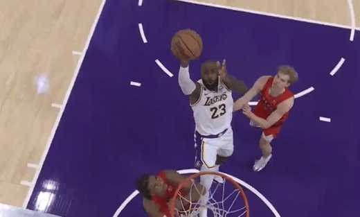 比赛第二节,斯马特送出四分位长传,詹姆斯接球后强硬打成2+1。