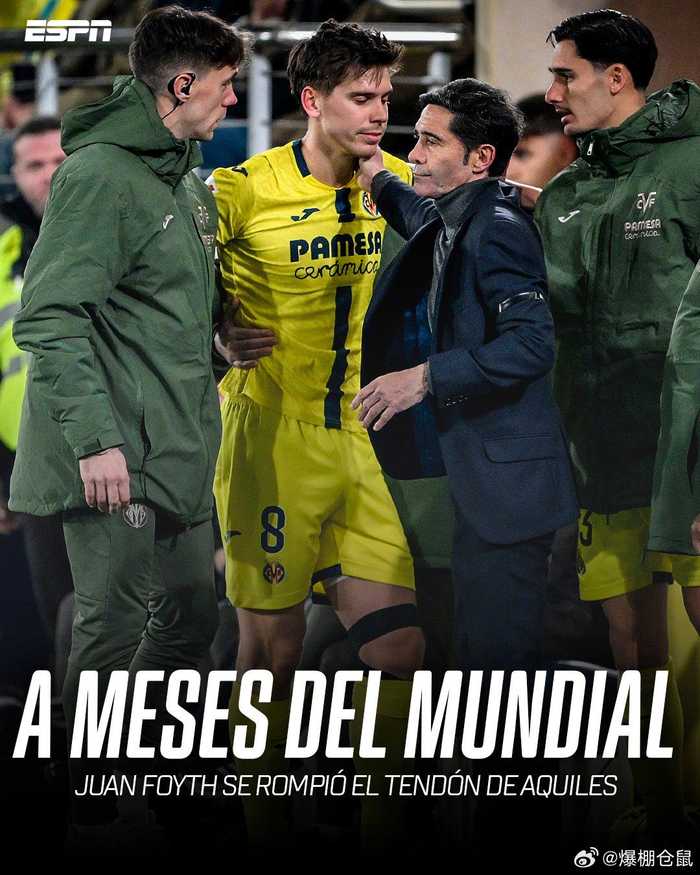【世界杯无望】比利亚雷亚尔宣布,后卫福伊特接受了左跟腱断裂修复手术,据媒体预计,他要缺席8个月的时间,这名阿根廷边缘国脚彻底无缘夏季的美加墨世界杯。